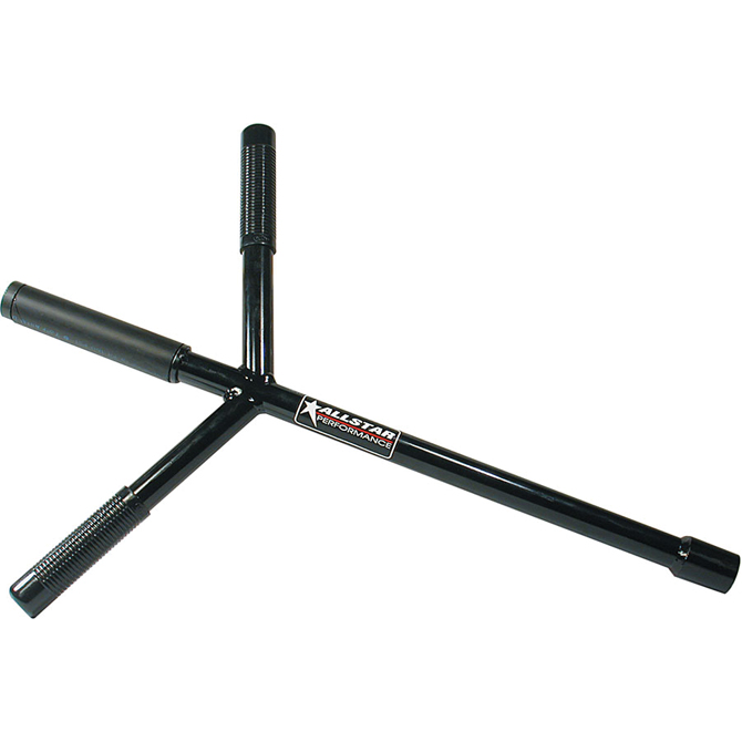 Lug wrench is a 1" diameter tube with a shallow 1" socket welded to one end and rotating piece of plastic pipe attached to the other. The 10" handles are angled with rubber grips and the overall length is 23".