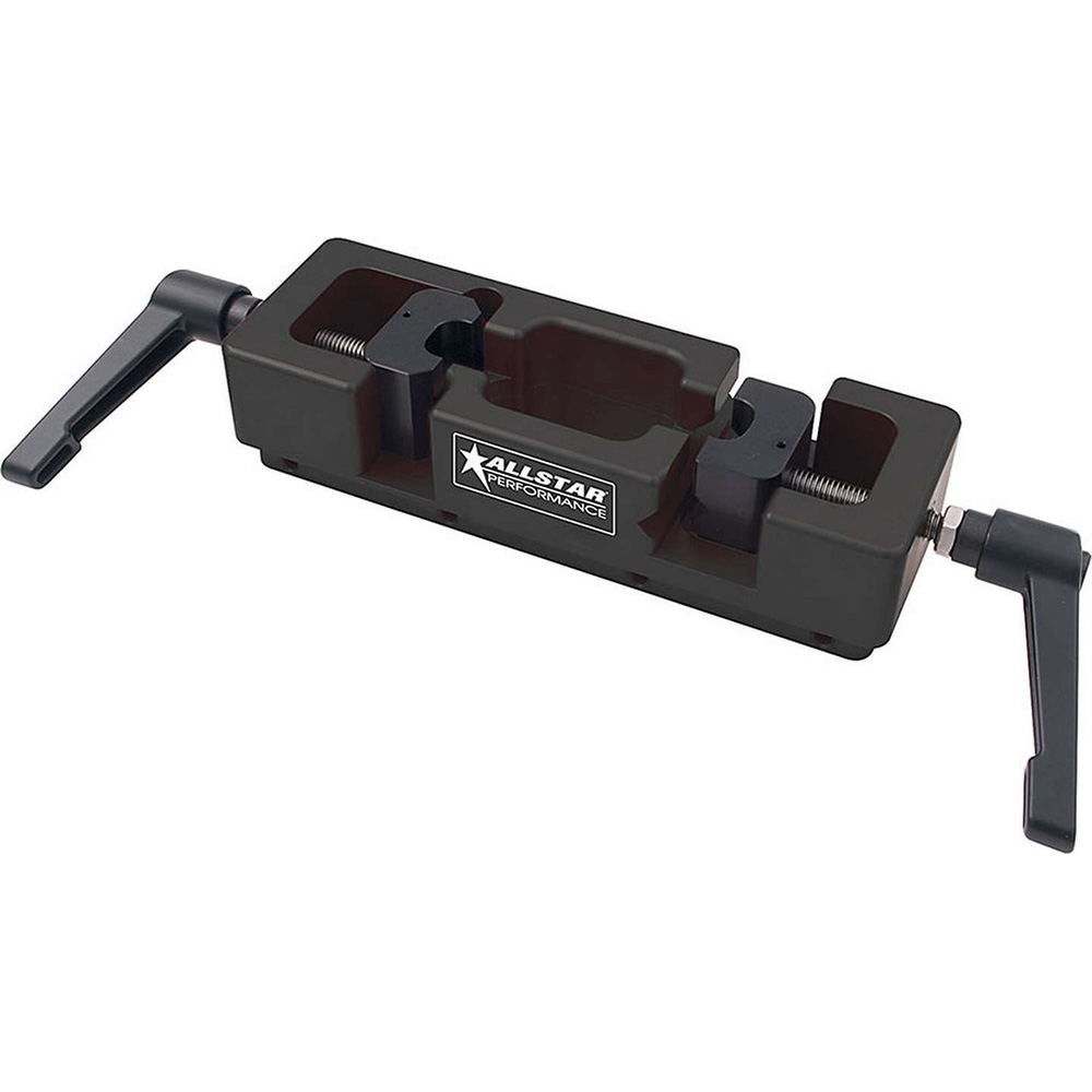 The all-in-one shock workstation holds most shock bodies in the upright position for ease of shaft removal or assembly and holds shock shafts vertical or horizontal for easier repairs and re-valving. Aluminum workstation can be placed in a vise, bench mounted using optional mounting bracket or custom mounted using 1/4" fasteners.