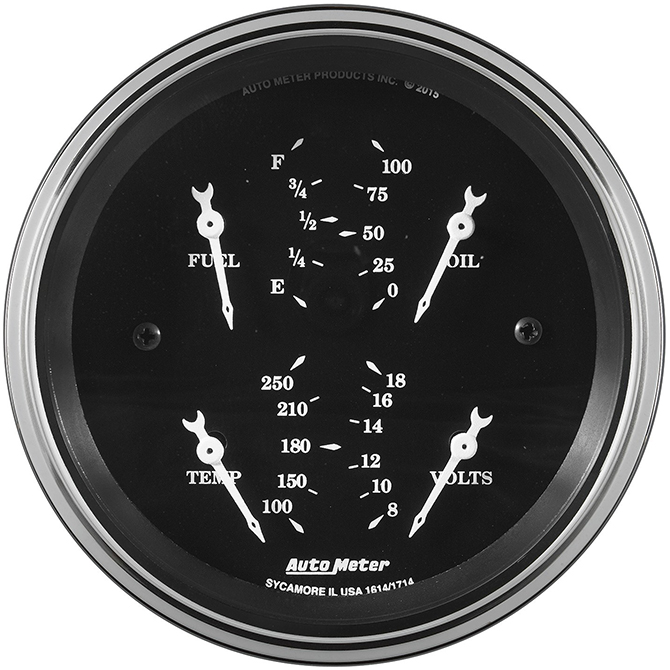 Sometimes space is limited. The Auto Meter Quad Gauge provides a solution to limited dashboard space while providing a clean look. Individual Auto Meter air core meter movements for each function provide the accuracy and durability required by even the most demanding applications. Includes a single wire 1/8â€Âť NPT temperature sender and a 1/8â€Âť NPT oil pressure sender. The voltmeter reads from 8-18v on negative ground electrical systems and fuel level resistance range is 0 ohms empty to 90 ohms full (compatible with Amid 60’s through mid 90’s GM fuel level senders).