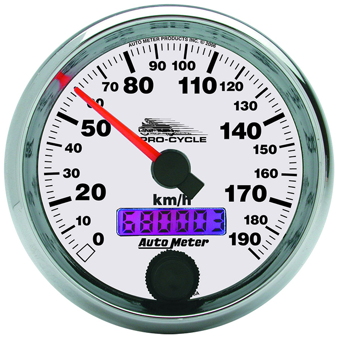AutoMeter 19341-M Pro-Cycle 2-5/8" Air-Core Electric Speedometer, 0-190 KPH, White