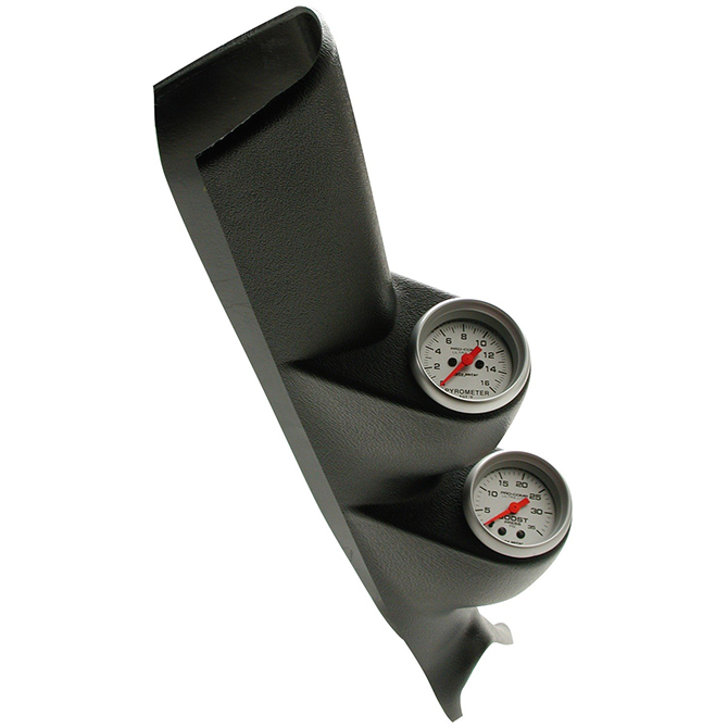 Auto Meter has brought together the most popular diesel gauges into a complete, ready to install dual pillar kit. The kit includes a pyrometer (EGT), boost gauge, and gauge pillar mount.