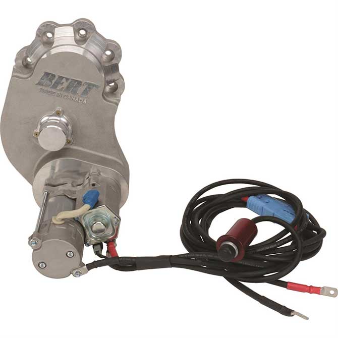Bert now offers a great way to start your sprint car without the need of a push truck. This sprint car starter mounts to your full-size quick change rear end. You just simply need to take off your rear cover and pull all your gears out and slip on this starter in place. It comes with a remote starter button. You are able to turn your sprint car's engine over with a push of a button and a 12 volt battery. Now your ready to make some noise.