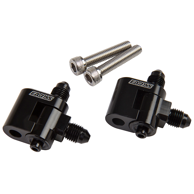 Another first from Earls are the adjustable LS steam tube adapters. The original GM brazed vent tube manifold does not take into consideration the aftermarket intakes and accessories we put on our performance vehicles. Replace the rigid hard lines with these adjustable outlet, O-ring seal adapters that converts to -3 or -4 AN plumbing. Earl's Steam tube adapters are the most adjustable and lowest profile available. These adapters LOOK as nice as they are installation friendly. There are 6 kits available to allow for the optimal routing on your application including at dual outlet option which eliminates needing a T adapter.