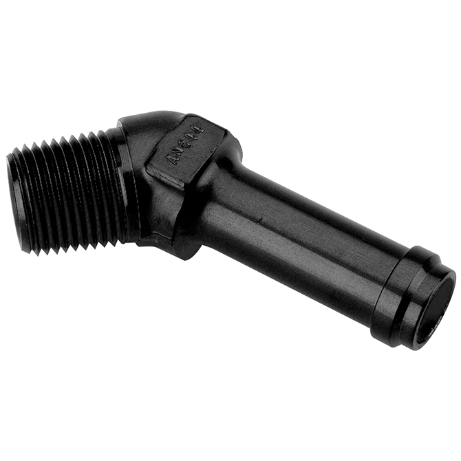 BLACK 45 DEG 3/4 ID HOSE TO 3/4 NPT
