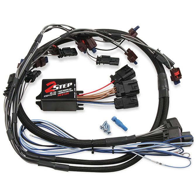 If your Coyote powered Ford was built after February 23, 2016, and you need a 2-Step rev-limiter for consistent burnouts or launches, MSD part number 87311 has you covered. When activated, the 2-Step will hold your engine at a constant RPM. This can be achieved by way of a clutch switch or push button. As soon as your activation switch or button is released, full ignition is restored and you’re off to the races. The rpm is adjusted with two built-in rotary dials ranging from 1,800-9,900 rpm in 100 rpm increments. A handy LED shows when the launch rev limit is active.