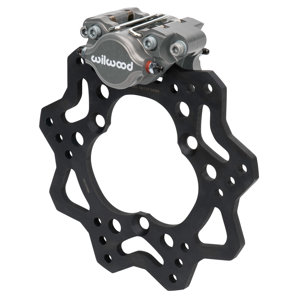 Wilwood now manufactures a high-performance scalloped rotor kit that is also a great option to fine-tune the left front on a winged sprint car. The smaller, lighter 10.20 inch steel rotor package provides better wheel clearance and offers improved pedal feel, making this kit the most tunable, controllable feel to fit any track/driver needs by simply changing brake pad compounds.