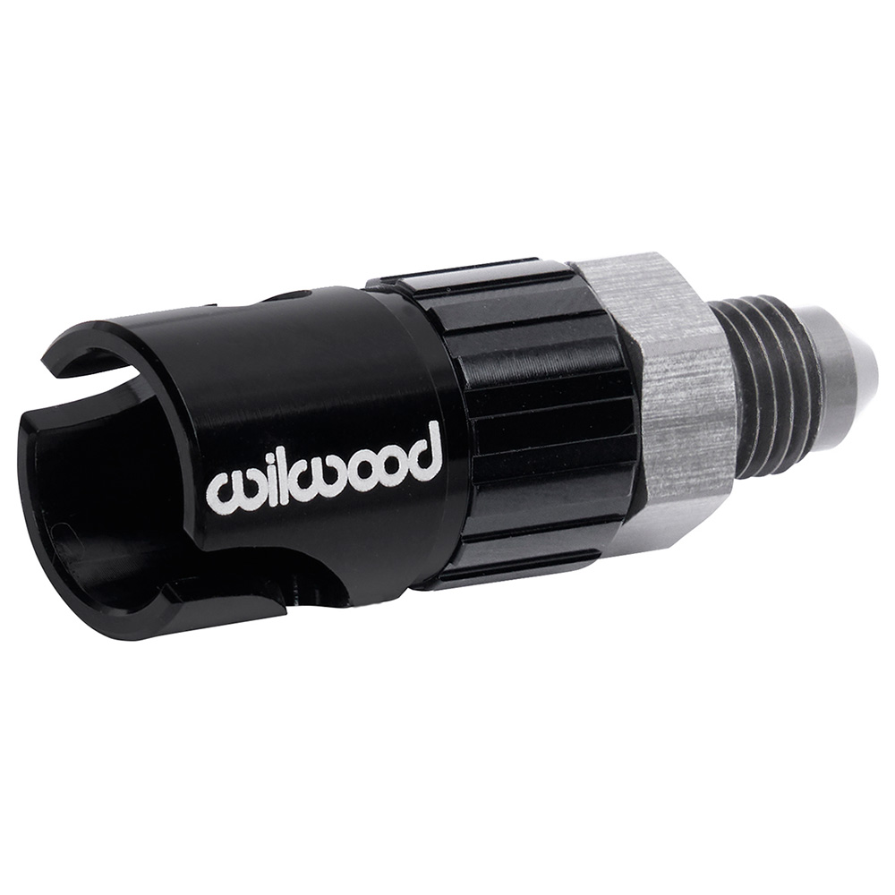 Wilwood dry break quick connect/disconnect fittings make changing brake components faster with no need to bleed the system. A quick quarter-turn disconnects it, without tools, but they connect as secure as a threaded flexline fitting. The internal spring-loaded seal prevents air from entering or fluid from escaping. Engineered explicitly for high-pressure hydraulic brake fluid systems. Configure hydraulic component spares with the appropriate adapter and pre-bleed for instant use, when needed. Race-proven in circle track, off-road, and endurance road racing. Lightweight (0.6 ounces) aluminum, precision engineered and hard anodized with female quick disconnect to -3 AN male fitting.
