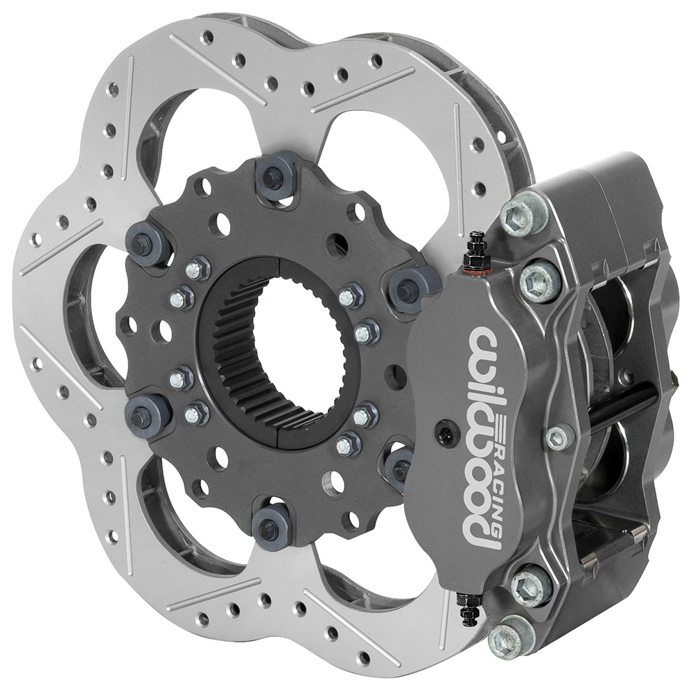 Billet Narrow Dynalite Radial Midget Inboard Kit Features: A fully engineered bolt-on brake system for sprint car quick change rears with 3.50 x 38 splined axles. With a 10.50" x .780" vented Super Alloy discs and a newly designed dynamic mount rotor axle clamp, are the lowest rotating weights available for Sprint racing. The lightweight advantages of the Super Alloy rotor are fortified with the high durability, long wear, and superior heat control properties of advanced materials technology. Newly redesigned Type III hard anodize Billet Dynalite Radial mount calipers with Composition Metallic pads, produce superior stopping power and consistent fade-free response. Kit includes Axle Clamp with Dynamic Mount Rotor Adapter assembly with T-nuts and mounting hardware.