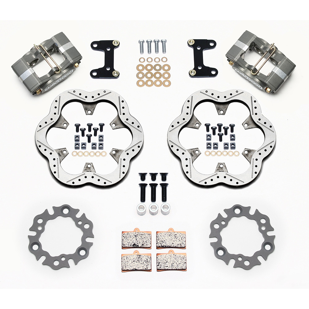The GP320 System features Wilwood’s competition proven dynamic rotor mount system, specially treated Super Alloy lightweight steel alloy rotors, and the highly efficient clamping force of the GP320 billet caliper for the most positive and fade-free performance available for sprint racing.Component Features: GP 320 Billet Aluminum 4 Piston Calipers with Four small pistons provide balanced distribution of the pad load for improved response and longer pad wear. Super Alloy Rotors: Unlike ceramic coatings that can flake away from the base metal during high heat cycling, Wilwood’s Super Alloy material controls heat transfer and provides a durable surface that can generate high friction for long, trouble-free duty cycles without the need for recoating. Dynamic mounting with Wilwood’s t-nut system isolates all thermal stress and distortion at the rotor mounting points caused by the different temperatures and expansion rates between the lightweight alloy steel rotor and the aluminum rotor mount plate. The rotors stay flatter and run truer to eliminate any possibility of pad knock-back or deflection. Dynamic Mount Rotor Plate: Lightweight billet alloy plate is machined with the slots to accept the rotor bolt t-nuts and adapt the rotor directly to 3 bolt sprint hubs. Wilwood 6211-CM Brake Pads A rigid caliper mounting bracket with premium grade fasteners and shim washers are included for secure, deflection free mounting.