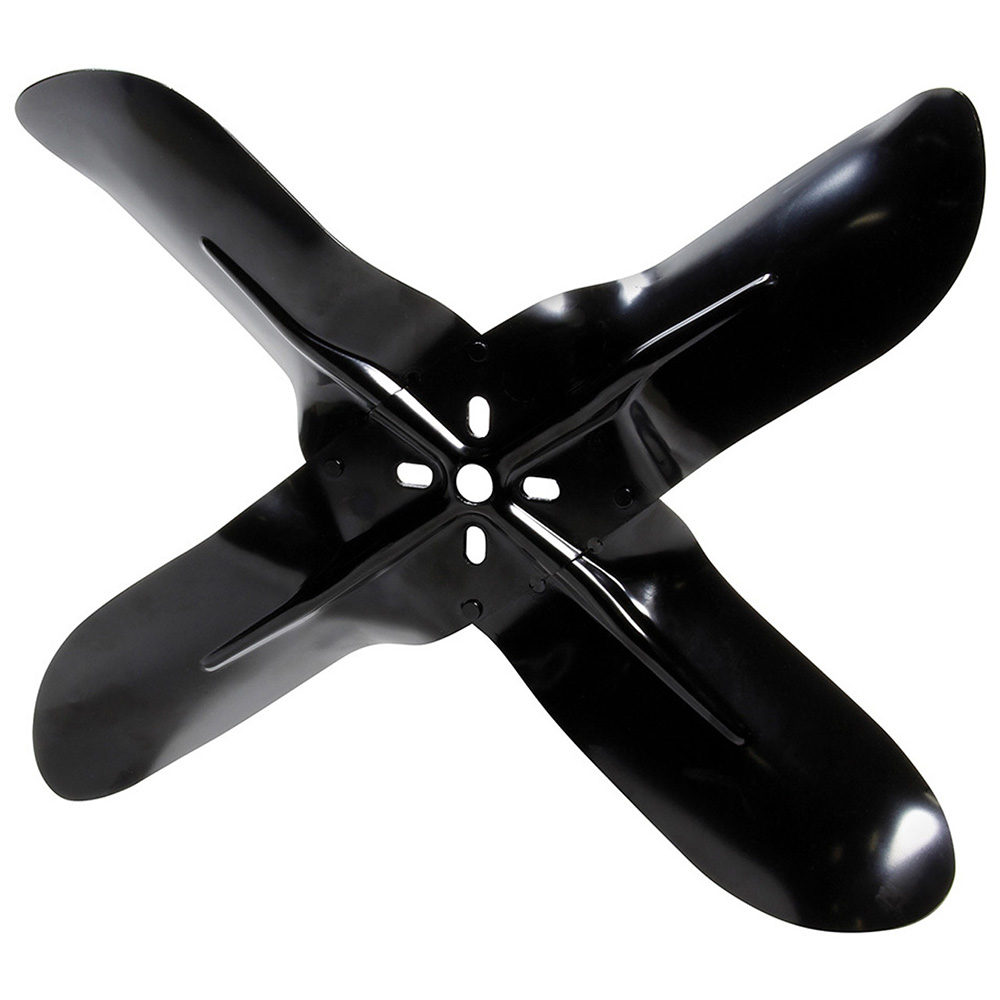 Steel 4-blade fan is a direct replacement for the popular GM 4-blade fan. Fan features a 60ˇ blade design, a universal bolt pattern with a 5/8" pilot hole and weighs approximately 3 lbs. Small diameter flat washers included for proper installation.