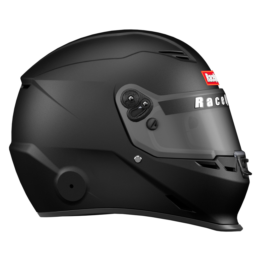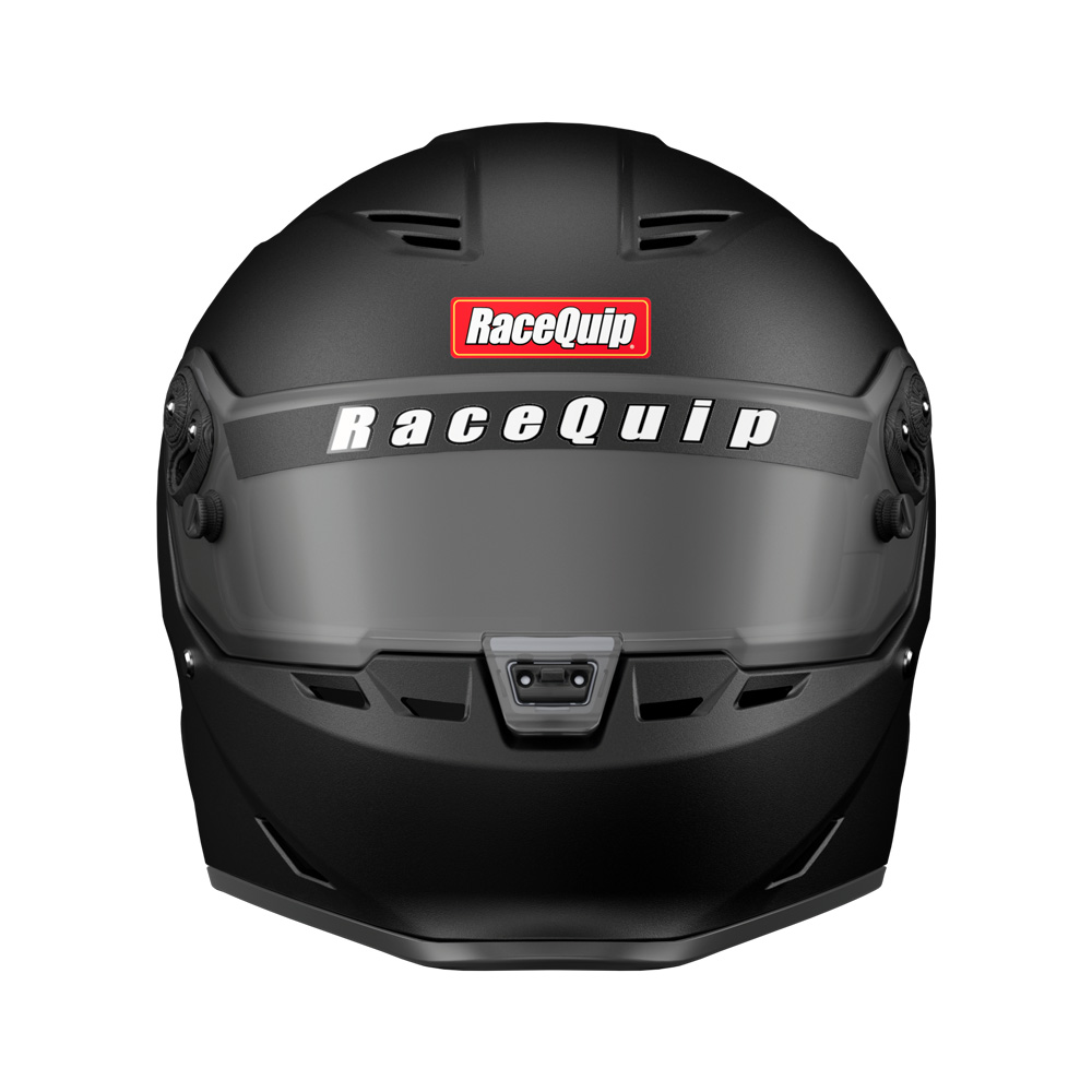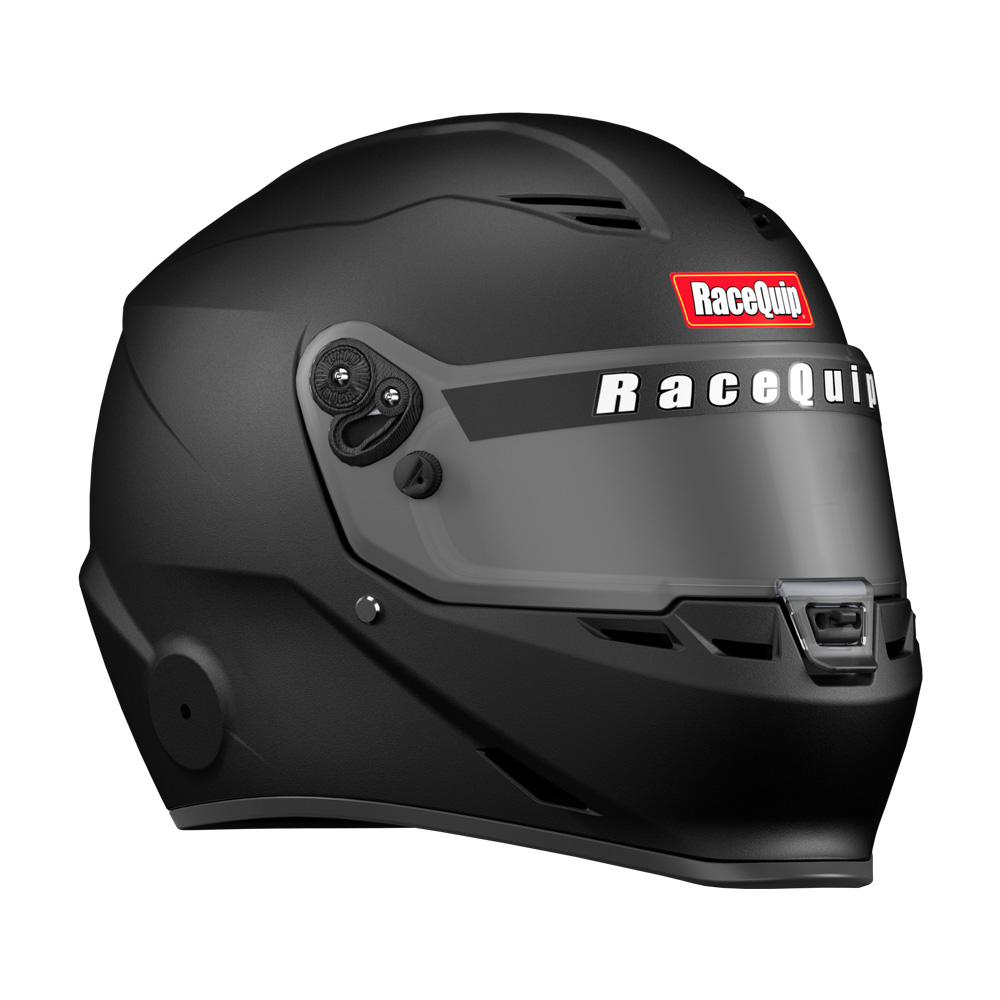 The RaceQuip PRO25 isnŐt just SA2025 certified, itŐs purpose-built for the racers who tighten their belts with one hand and flip the ignition switch with the other. This is the helmet you grab whether youŐre staring down the christmas tree or launching away from the green flag, whether your tires are picking up clay or laying down rubber. Under that slick aero profile, the PRO25 packs serious protection: a hand-laid FRP composite shell, energy-absorbing EPS liner, and fire-retardant Nomex¨ interior. The wide eye port keeps your field of vision clear Đ with space left over for your glasses Đ and the distortion-free 3mm polycarbonate shield features tear-off posts and a silicone gasket to seal out dust and dirt. While the integrated duckbill chin-spoiler keeps things planted at speed, venting up top and out the back helps keep your head cool when your race (and the weather) heats up. Anodized aluminum pivot hardware, 8-position hand ratcheting tear-off posts, and M6-threaded HANS/FHR inserts are standard because cutting corners on your Safety isnŐt. The PRO25 delivers pro-level safety for racers who build it, haul it, and race it themselves. NOTE: This helmet is Snell SA2025-certified and is broadly accepted by race organizing bodies and tracks through 2035. Always verify safety rules with your sanctioning body.