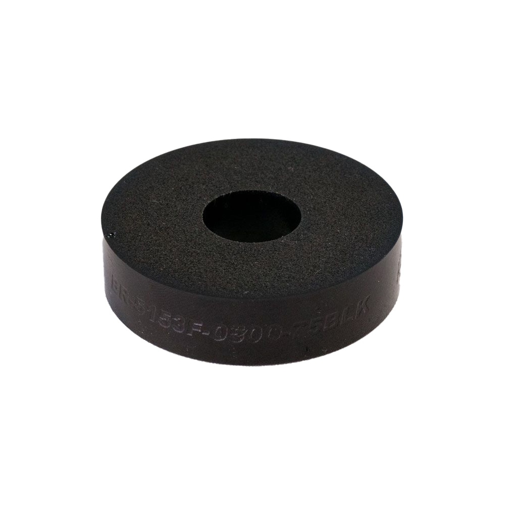 The RES foam 5150 / 5153 Series bump stops come with a .500" or .625" ID and a 2" OD and are offered in heights of 1/2", 3/4" and 1" to meet most packaging needs. With these foam stops, the first ~50% of travel is fairly linear, before turning progressive after that point. Offered in four densities - SOFT (RED), MED (WHITE), HARD (BLUE) and X HARD (BLACK) and color coded for easy reference. When running multiple stops, a divider washer should be used to separate the stops to maintain consistency.