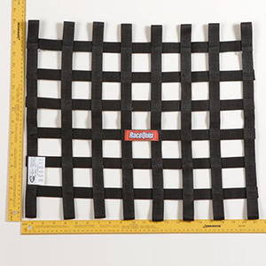RaceQuip SFI 27.1 Rated Ribbon Window Nets are constructed of heavy-duty 1 polypropylene webbing and nylon thread for maximum durability. RaceQuip utilizes a jig-built construction technique to ensure consistent size, shape, and fit. This auto racing window net is a very unique size (18 High X 21 Wide) and satisfies many applications where a custom racecar window net would be needed. SFI 27.1 certified and available in black.