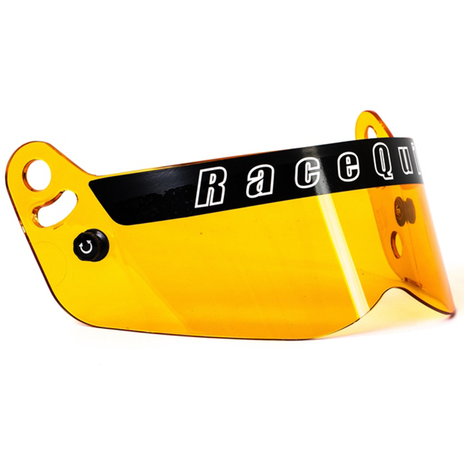 This amber tinted polycarbonate faceshield is designed to fit RaceQuip VESTA15 Helmets. RaceQuip faceshields (sometimes called helmet visors) are formed from 3mm thick distortion free high strength polycarbonate. A Visor Strip and Tear-Off Posts are included. RaceQuip offers several different helmet face shields to meet any racing conditions you may encounter, from standard clear replacements to dark smoke tint, mirror or blue irridium for bright sunlight conditions, and amber for nighttime racing. All shields are distortion free high strength 3mm polycarbonate and include a visor strip and tear off posts.