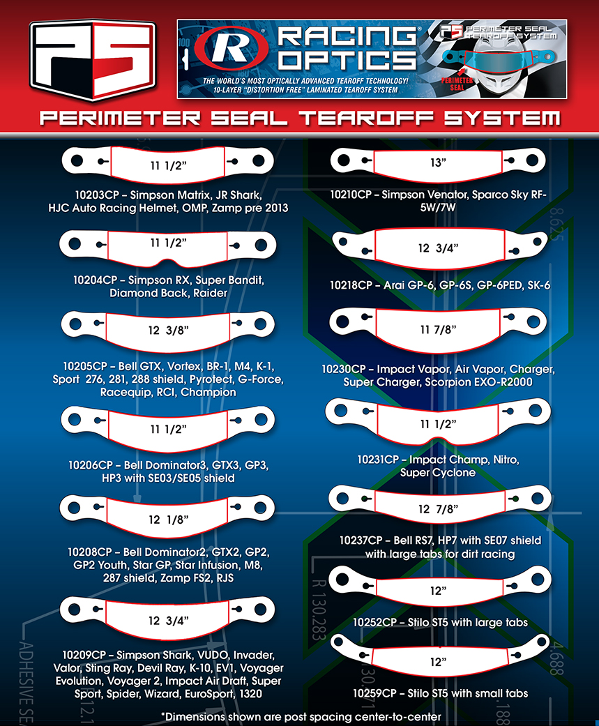 The best tearoff system in the world just got better. The new Racing Optics Perimeter Seal Stack has an adhesive band that seals up against your visor. This new seal completely eliminates dirt, dust, wind, water and scratching of your visor. Now you can see clearly for the entire race no matter what the conditions and run that expensive shield all season long. The new Racing Optics Perimeter Seal uses the same 10 layer XStack and you can install multiple Stacks to create a 30 layer Sealed Stack! They are packaged with 3 sets of 10 layers or 30 tearoffs per sleeve.