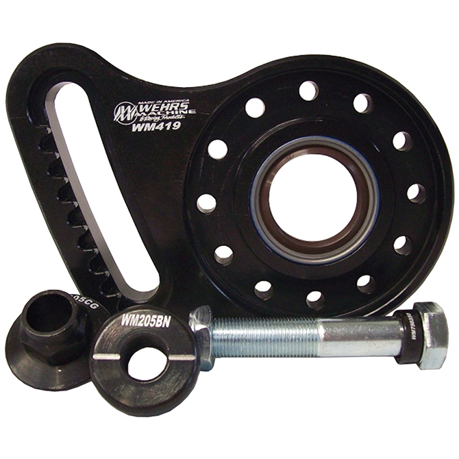Steel quick change pinion mount machined with the seal installed in it to eliminate the seal plate like our standard steel mounts use. This profile matches our WM219 mount.