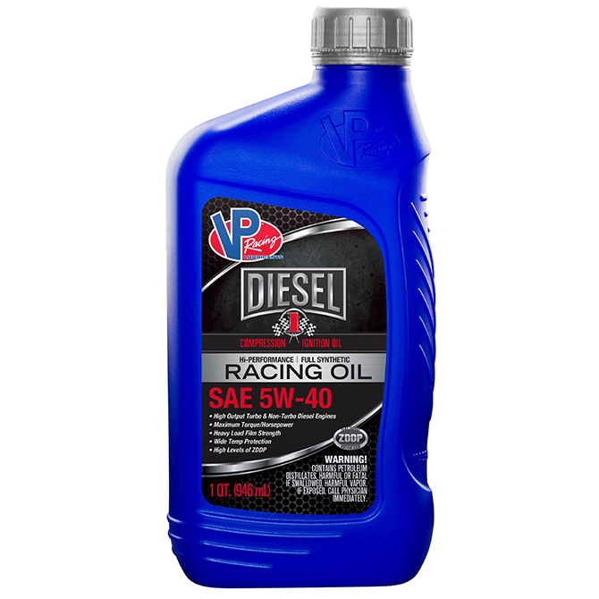 VP Racing CI1 Hi-Performance diesel engine oil is formulated with outstanding high-viscosity index synthetic base oils. This provides excellent high and low-temperature protection for high performance diesel race engines. The lubricant includes high levels of ZDDP and an aggressive detergent dispersant and anti-oxidant package to protect oil thickening and engine deposits. VP Racing compression ignition oil is recommended for many high performance diesel race engines, as well as tow vehicles.