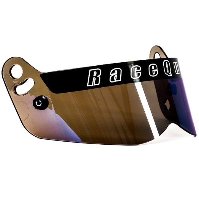 This blue irridium polycarbonate faceshield is designed to fit RaceQuip VESTA15 Helmets. RaceQuip faceshields (sometimes called helmet visors) are formed from 3mm thick distortion free high strength polycarbonate. A Visor Strip and Tear-Off Posts are included. RaceQuip offers several different helmet face shields to meet any racing conditions you may encounter, from standard clear replacements to dark smoke tint, mirror or blue irridium for bright sunlight conditions, and amber for nighttime racing. All shields are distortion free high strength 3mm polycarbonate and include a visor strip and tear off posts.
