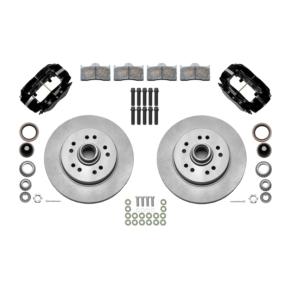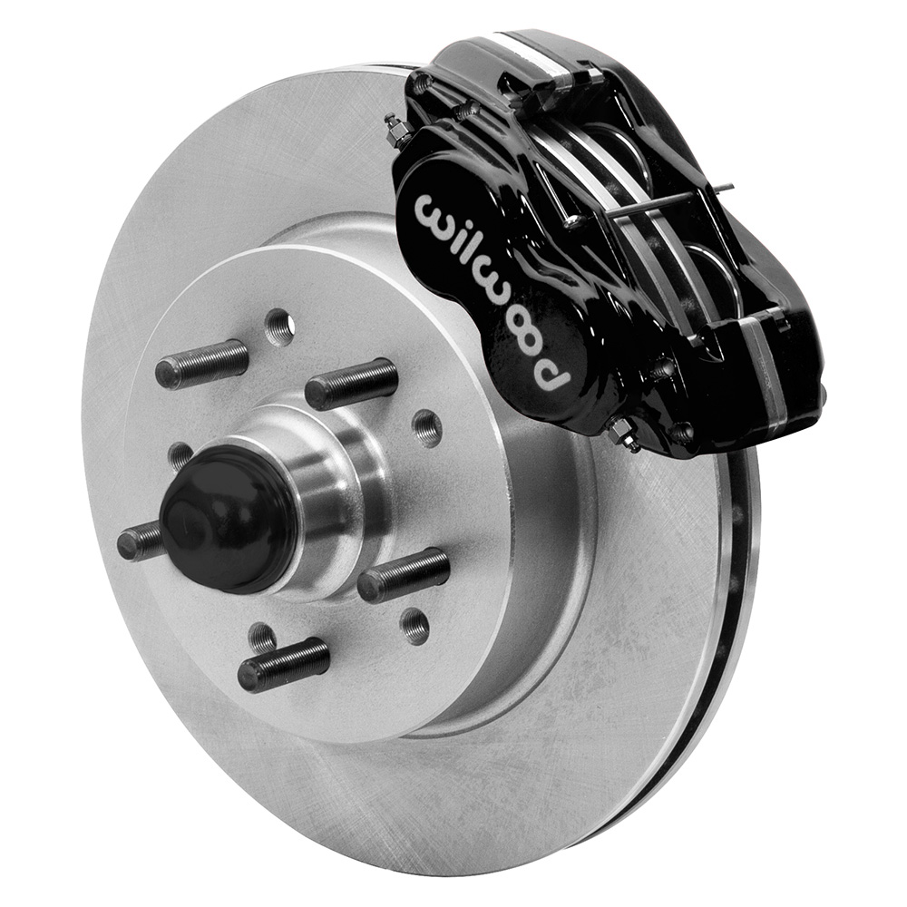 Wilwood's Classic Series front disc brake kit Wilwood's Tri-Five Pro spindles. Tri-Five Pro Spindles fit 55-57 full size Chevrolet vehicles. A completely new kit design, featuring a large 11.50" x 1.00” rotor and hub assembly. Based on the Forged Dynalite-M caliper, these versatile kits are easily optioned to suit the braking requirements and style preferences for a daily driver or the most discriminating show enthusiast. Intended vehicle applications require no modifications for installation, and provide plenty of clearance inside popular aftermarket 15" (disc brake) wheels. FDL-M 1 piece kits can be used with either manual or power boost master cylinders. Kits are complete with calipers, rotors, brackets and hardware.
