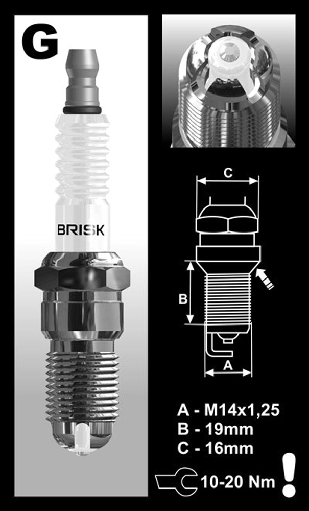 Brisk Premium Racing Spark Plugs LGS have unique multi ground electrode design and a silver core giving an outstanding performance in igniting over reach mixture associated with tuned performance engines.