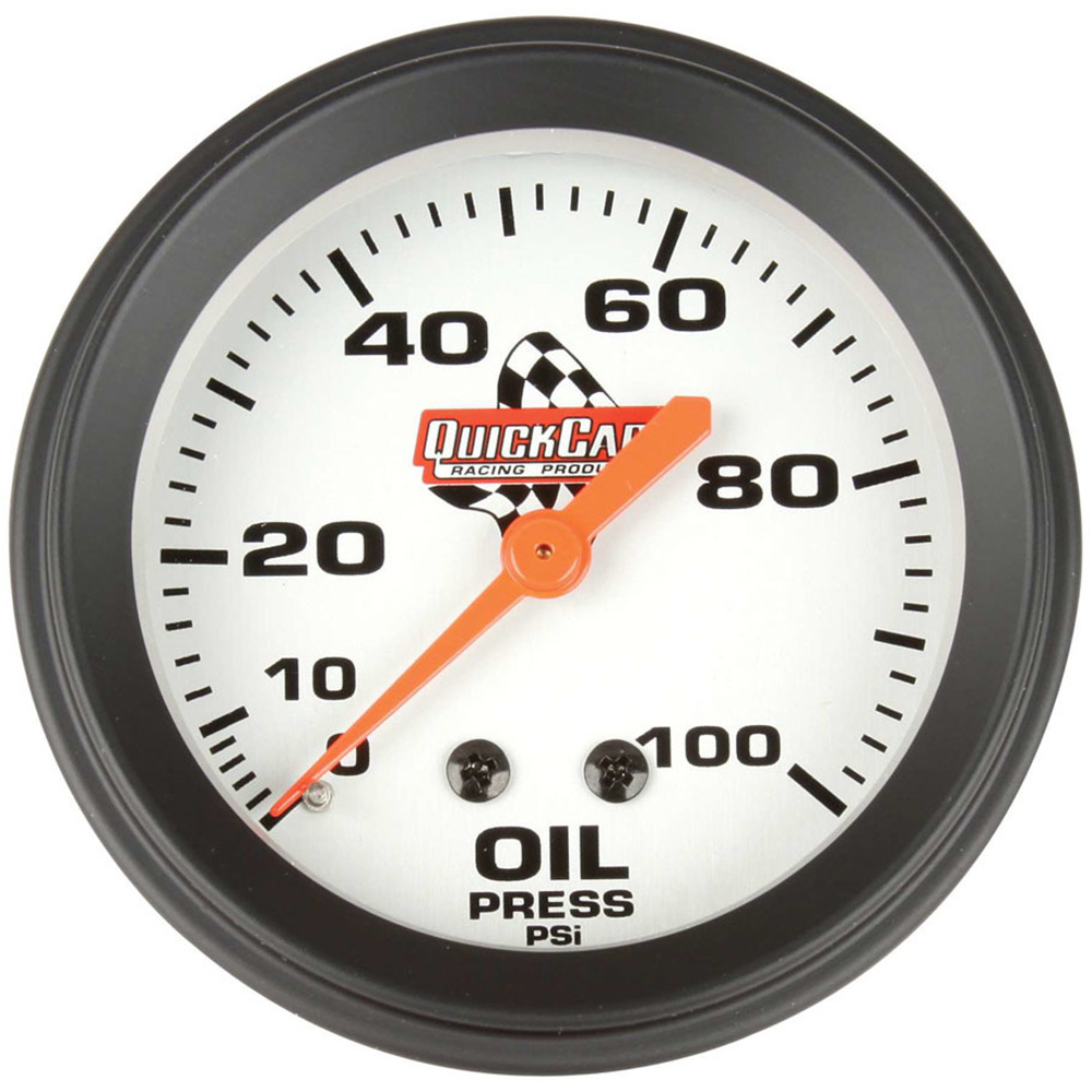 Oil Pressure Gauge - 0-100 psi - Mechanical - Analog - 2-5/8 in Diameter - White Face - QuickCar Sprint Panels - Each
