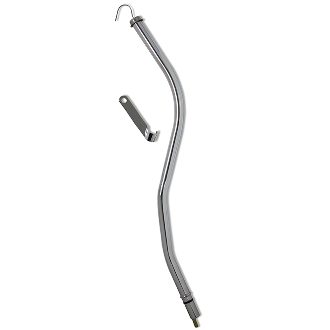 Complement your engine compartment with this beautifully chrome plated dipstick. Fits the popular GM TH-400 transmission. The design of the dipstick tube has been revised to a 2-piece design. The revised design makes the package smaller and more suitable for sale in retail stores since the packaging takes up less space in the planogram.