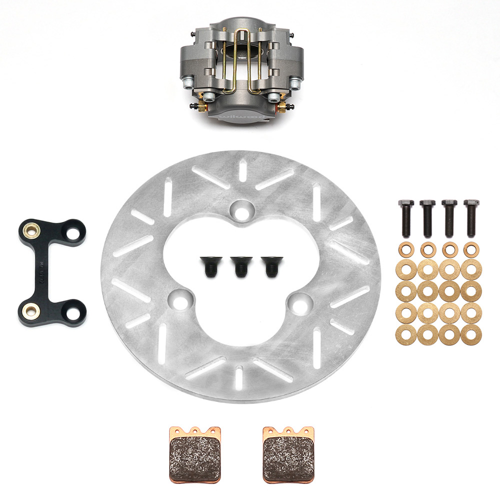 The Dynapro Single Left Front Sprint kits are a further evolution of a proven design from Wilwood's 35+ years of engineering and producing the best open wheel braking systems. Dynapro single calipers have full 2.40 square inches of area for increased clamping force. Kits are offered with either Slotted Titanium or Scalloped Alloy Steel Rotors for high-heat or Aluminum rotors for maximizing weight saving on light braking tracks. The kit comes complete with caliper, brake pads, caliper mounting brackets, caliper mount bolt kit, rotor and rotor mounting hardware.
