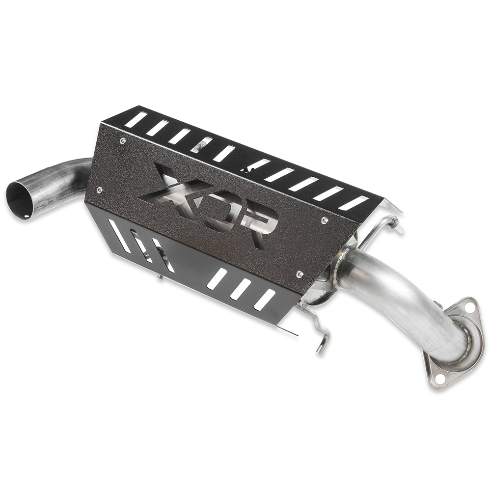 The new XDR Competition single exhaust system utilizes full 304S stainless steel construction, bolts up to the factory flange and is firmly held in place using the factory mounts and springs. Features include a large 2.50-inch mandrel-bent inlet pipe flowing into an XDR competition race muffler with a 2.50-inch mandrel-bent tailpipe exiting in the stock location. The tailpipe is designed to re-use the OEM USFS qualified spark arrestor allowing you to meet stock class race rules when necessary. The cheap factory plastic heatshield is replaced with a black powder-coated heatshield sporting a laser-cut XDR logo that not only looks good, provides better airflow and heat dissipation, but also makes the statement that your serious about performance. As a Competition XDR system, it will generally provide a moderate to aggressive sound level. Includes easy to follow installation instructions and all necessary hardware for a quick and simple at home installation. Note: This system does not include a catalytic converter and therefore is not emissions compliant for on-road or trail use. For Competition use only.