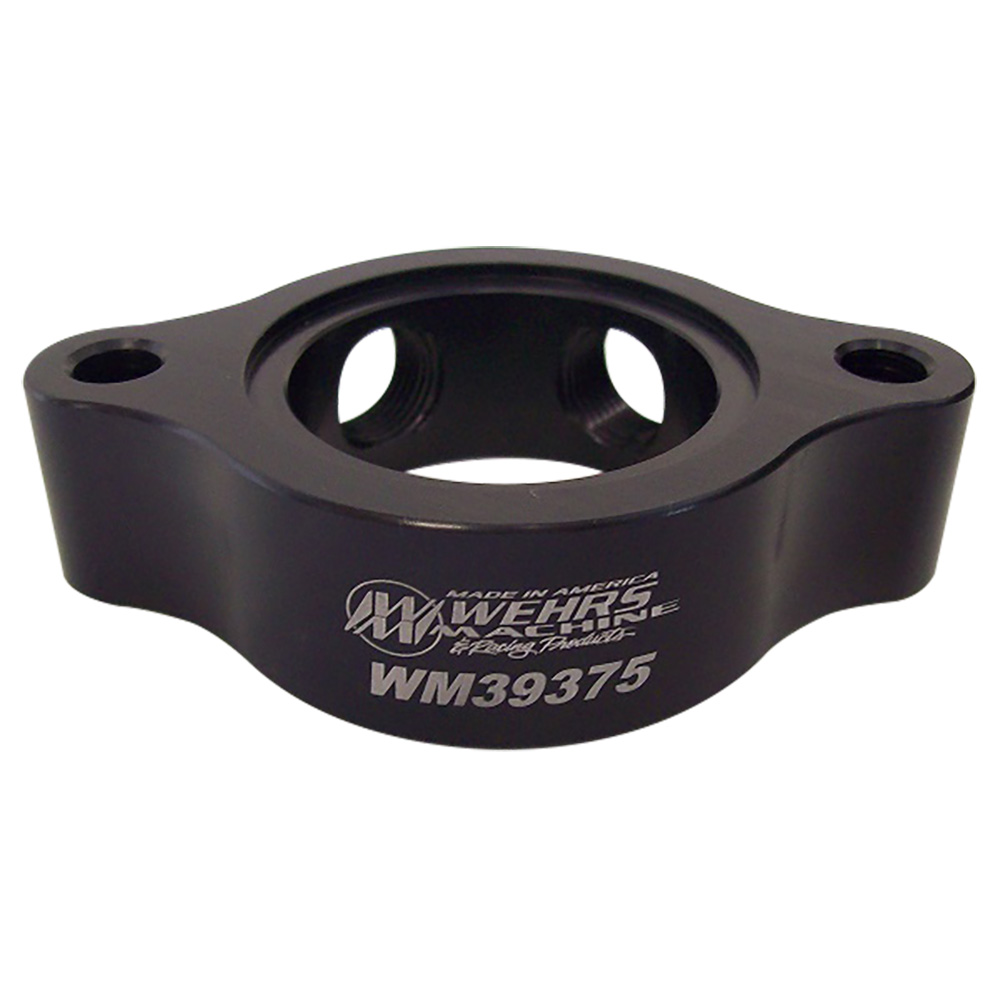 Used when running the remote lines to the rear of the intake to prevent vapor pockets. The riser is made from 1'' aluminum and has 2 ports tapped with 3/8'' NPT threads. Top is recessed for relocation of thermostat. Bottom is flat. Will use stand gaskets on top and bottom. Will fit any small block Chevy.