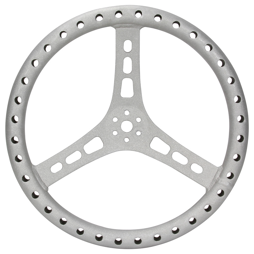 Steering Wheel - 15 in Diameter - 2-1/2 in Dish - 3-Spoke - Drilled / Shot Peened Grip - Aluminum - Natural - Each
