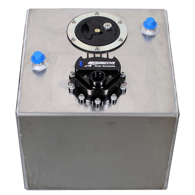 6-gallon Racing Fuel Cell with 3.5 Brushless Gear Pump, aircraft filler cap, ORB-10 outlet, AN-08 baffled return and roll-over protected AN-08 vent. This is the same fuel cell design used in the Ford Cobra Jet, Chevy COPO Camaro and many of the MOPAR Drag Pack cars.