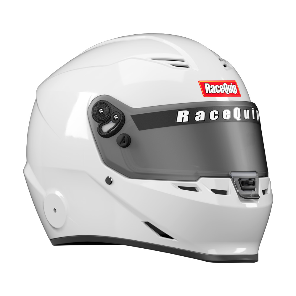 The RaceQuip PRO25 isnŐt just SA2025 certified, itŐs purpose-built for the racers who tighten their belts with one hand and flip the ignition switch with the other. This is the helmet you grab whether youŐre staring down the christmas tree or launching away from the green flag, whether your tires are picking up clay or laying down rubber. Under that slick aero profile, the PRO25 packs serious protection: a hand-laid FRP composite shell, energy-absorbing EPS liner, and fire-retardant Nomex¨ interior. The wide eye port keeps your field of vision clear Đ with space left over for your glasses Đ and the distortion-free 3mm polycarbonate shield features tear-off posts and a silicone gasket to seal out dust and dirt. While the integrated duckbill chin-spoiler keeps things planted at speed, venting up top and out the back helps keep your head cool when your race (and the weather) heats up. Anodized aluminum pivot hardware, 8-position hand ratcheting tear-off posts, and M6-threaded HANS/FHR inserts are standard because cutting corners on your Safety isnŐt. The PRO25 delivers pro-level safety for racers who build it, haul it, and race it themselves. NOTE: This helmet is Snell SA2025-certified and is broadly accepted by race organizing bodies and tracks through 2035. Always verify safety rules with your sanctioning body.