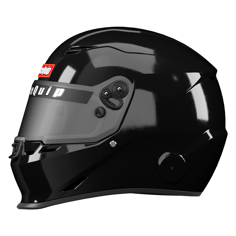 The RaceQuip PRO25 isnŐt just SA2025 certified, itŐs purpose-built for the racers who tighten their belts with one hand and flip the ignition switch with the other. This is the helmet you grab whether youŐre staring down the christmas tree or launching away from the green flag, whether your tires are picking up clay or laying down rubber. Under that slick aero profile, the PRO25 packs serious protection: a hand-laid FRP composite shell, energy-absorbing EPS liner, and fire-retardant Nomex¨ interior. The wide eye port keeps your field of vision clear Đ with space left over for your glasses Đ and the distortion-free 3mm polycarbonate shield features tear-off posts and a silicone gasket to seal out dust and dirt. While the integrated duckbill chin-spoiler keeps things planted at speed, venting up top and out the back helps keep your head cool when your race (and the weather) heats up. Anodized aluminum pivot hardware, 8-position hand ratcheting tear-off posts, and M6-threaded HANS/FHR inserts are standard because cutting corners on your Safety isnŐt. The PRO25 delivers pro-level safety for racers who build it, haul it, and race it themselves. NOTE: This helmet is Snell SA2025-certified and is broadly accepted by race organizing bodies and tracks through 2035. Always verify safety rules with your sanctioning body.