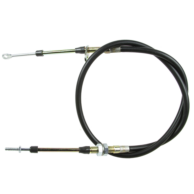 B&M hard-core Super Duty Race shifter cables are available with a black cable housing for most B&M shifters. These are available in 3, 4, 5, or 8-foot lengths. It's properly clearanced to reduce backlash to within .015-in/ft. and has a large 0.375 inch 'long-lay' (stiffer, less prone to kinking) outer jacket for durability and dependability. The cable features an eyelet at one end to connect to the shifter, and a 10-32 threaded end at the transmission side of the cable and has a 2.50-inch stroke. This is the same type of cable supplied when you purchase a B&M Race shifter.