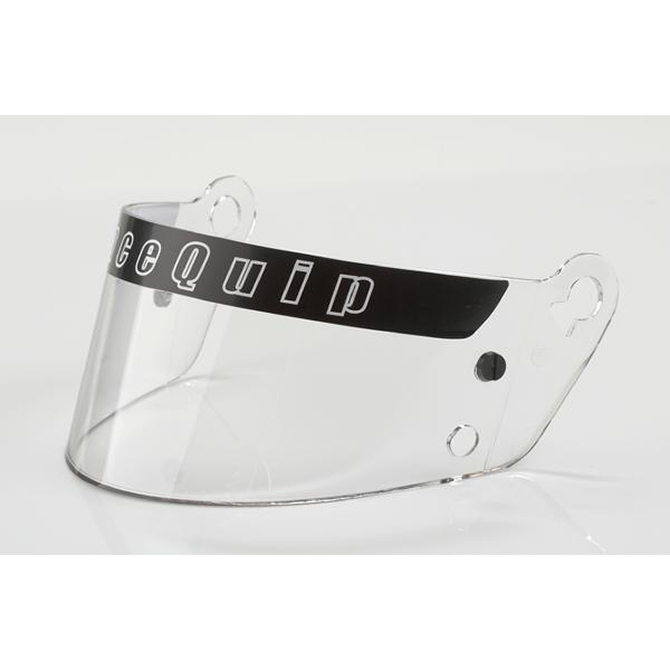 This clear replacement polycarbonate faceshield is designed to fit RaceQuip SA-2005, SportMod, and SFI 2005 Youth Series Helmets. RaceQuip faceshields (sometimes called helmet visors) are formed from 3mm thick distortion free high strength polycarbonate. A Visor Strip and Tear-Off Posts are included.