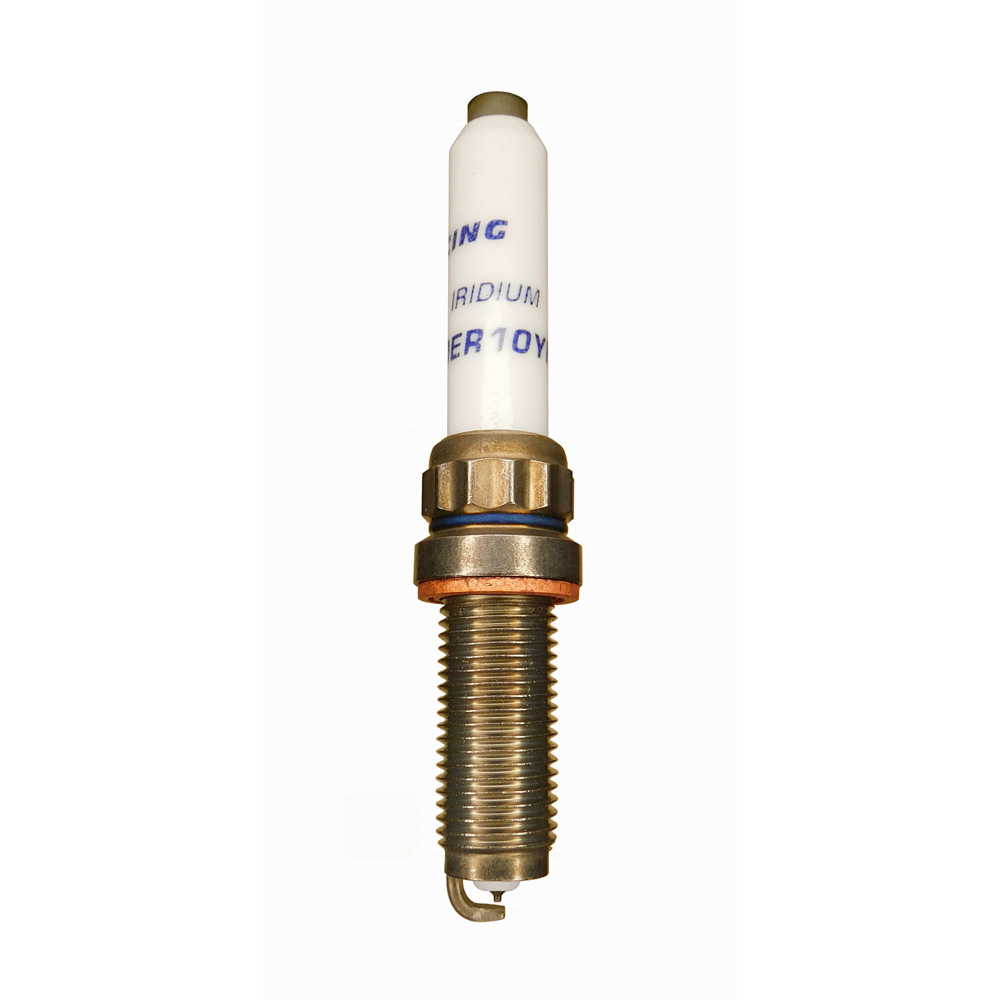 BRISK SILVER RACING 2MOER10YIR spark plug. 12mm thread, 1.05"(26.1mm) reach, 14mm Bi-Hex, gasket seat, projected tip, resistor, Iridium center electrode., cut-back ground electrode, VW cup terminal nut.