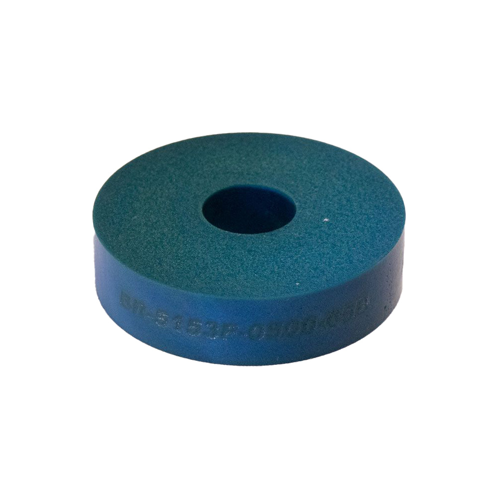 The RES foam 5150 / 5153 Series bump stops come with a .500" or .625" ID and a 2" OD and are offered in heights of 1/2", 3/4" and 1" to meet most packaging needs. With these foam stops, the first ~50% of travel is fairly linear, before turning progressive after that point. Offered in four densities - SOFT (RED), MED (WHITE), HARD (BLUE) and X HARD (BLACK) and color coded for easy reference. When running multiple stops, a divider washer should be used to separate the stops to maintain consistency.