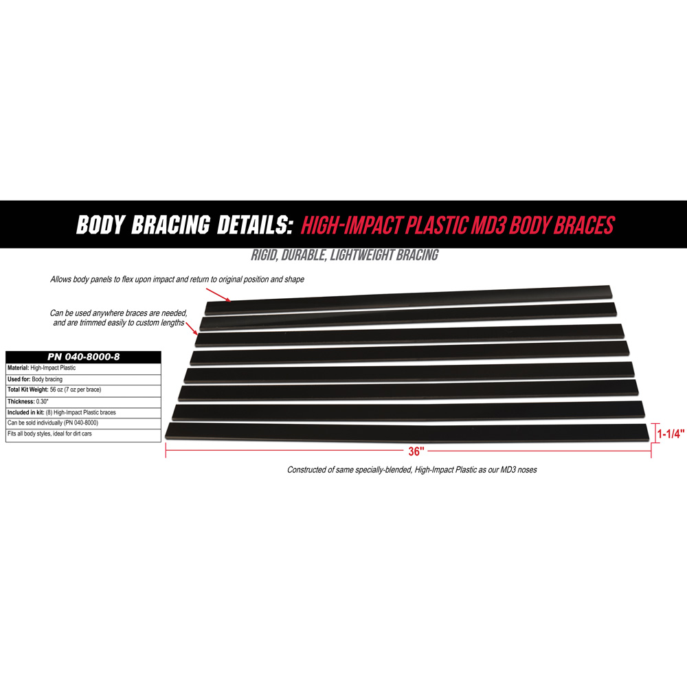 - Brace is 1-1/4" x 36" x 0.30" thick