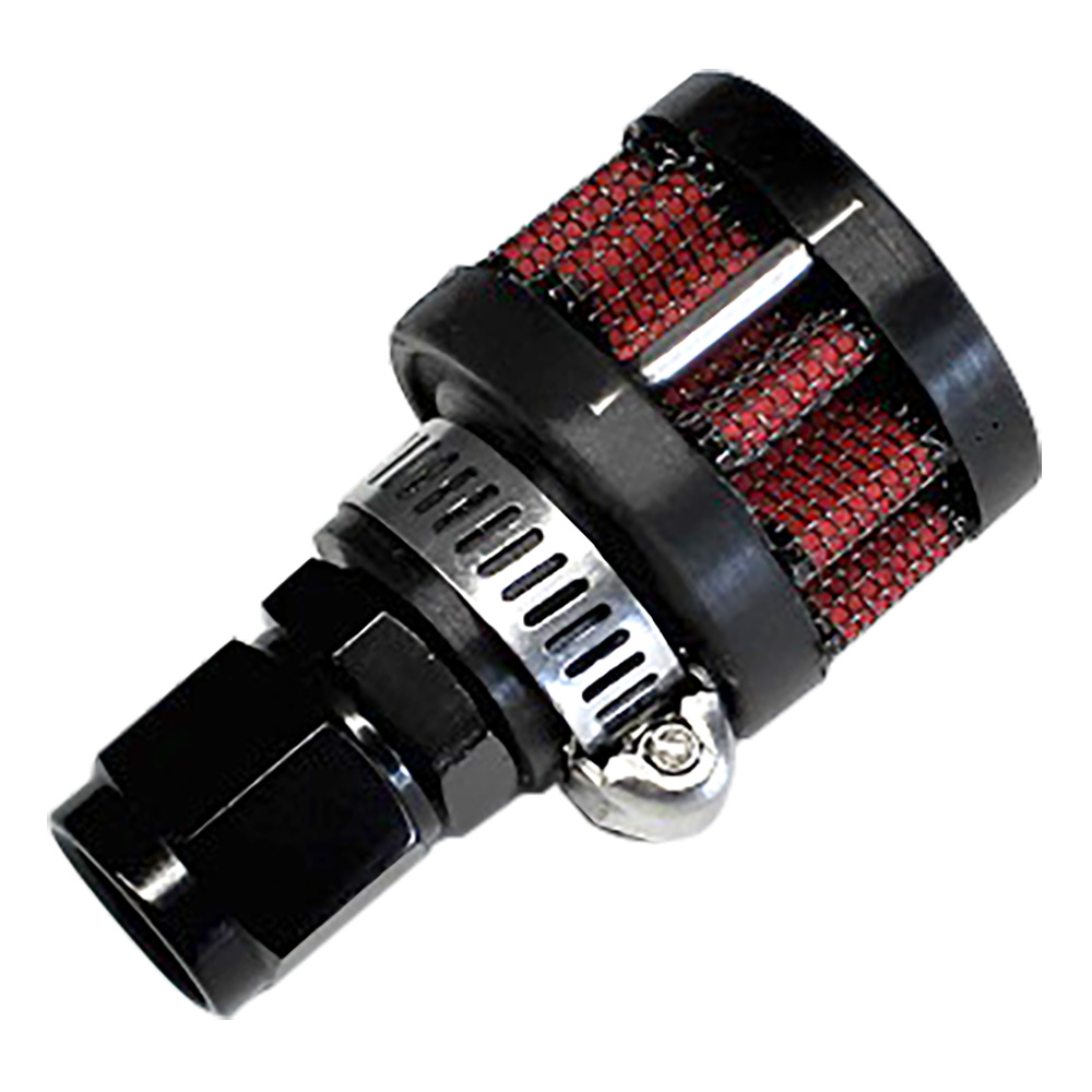 Trick little breather for your fuel cell. No need for an extra line, attaches right to the cell and has an anti-slosh breather inside the filter. This filter will not completly stop fuel coming out from sloshing but will reduce the fuel that does come out. This is our breather with -6AN fitting. (This does not stop all fuel slosh This filter does not operate as or replace a rollover valve.)