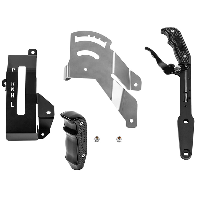 B&M Racing is proud to introduce our new Magnum Grip gated performance shifter and matching grab handle for all 2017-2018 Can-Am Maverick X3 side by sides. The Magnum Grip shift handle set features CNC billet aluminum construction, an ergonomic design for a modern aggressive look, replaceable midnight black polycarbonate side grip plates. The gated shifter has a spring loaded stainless steel trigger for positive locking and unlocking between gears and if that weren't enough, the shifter also includes a security feature that allows a standard padlock to be installed to prevent unwanted use of the vehicle. Other features include MIL-Spec anodized black finish, stainless steel gate plate, bushing rod and trigger. Includes all necessary hardware and easy to follow installation instructions. Be sure to check out all the colors and finishes of side grip plates available for the Magnum Grip shifters to customize your Maverick's interior.