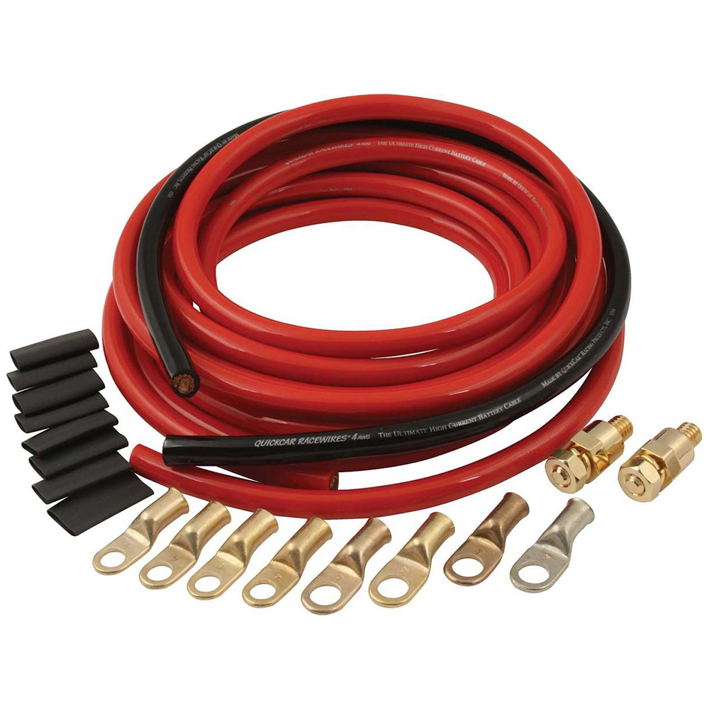 QuickCar Battery Cable Kit 2 AWG 15' Red & 2' Black cable 2 Side Mount Terminals 8 power rings