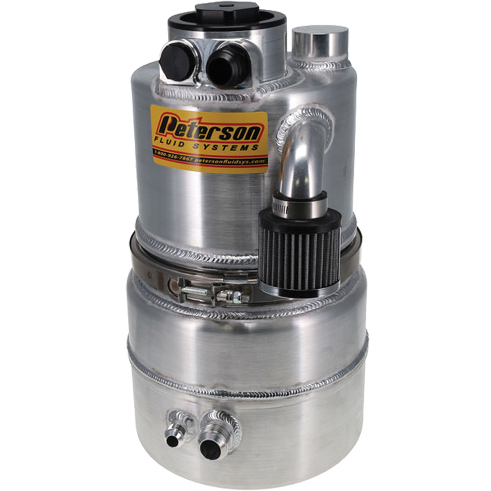When chassis space is limited, and more oil capacity is required from engine builders, look to the new Fat Boy Dirt Late Model oil tank from Peterson Fluid Systems. With a lower profile design and all the standard features of our race proven DLM tanks, you’ll get a tank that is 18.62” tall and has a 5-gallon capacity. 10.5” tank straps with mounting brackets are available for your convenience. Part number 08-2106 includes two 10.5” straps with mounts for 1.5” chassis bars or 08-2105 includes two 10.5” straps with panel mount.