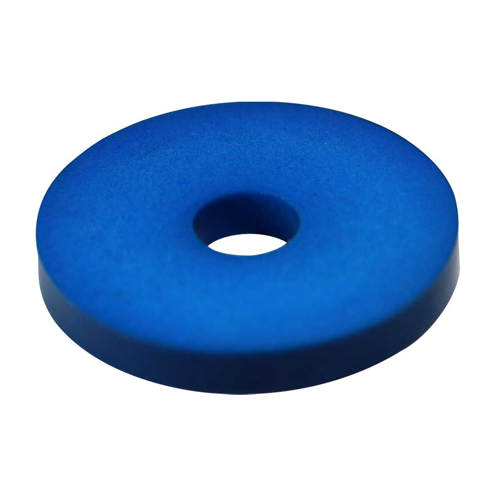 The RES foam 5150 / 5153 Series bump stops come with a .500" or .625" ID and a 2" OD and are offered in heights of 1/4", 1/2", 3/4", 1" and 1.5" to meet most packaging needs. With these foam stops, the first ~50% of travel is fairly linear, before turning progressive after that point. Offered in four densities - SOFT (RED), MED (WHITE), HARD (BLUE) and X HARD (BLACK) and color coded for easy reference. When running multiple stops, a divider washer should be used to separate the stops to maintain consistency.