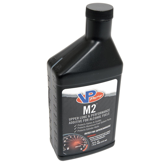 VP Racing M2 Upper Lube Performance Additive is designed to protect the investment in your methanol or ethanol powered engine and will more than pay off at rebuild time. This lubricant will protect valves and valve guides, aluminum fuel system parts, and cylinder walls—and it's rated for use with superchargers! VP Racing M2 Upper Lube Performance Additive is offered in scented or unscented formulas, order the M2 lube suited to your needs.