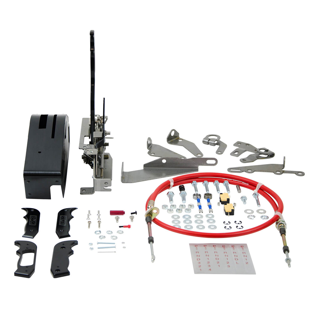 The Magnum Grip Stealth Pro Ratchet shifter is one of our most popular and easiest to operate race shifters. Features include positive ratcheting design that self-centers the handle after each shift giving you maximum clearance behind the shifter and will not allow you to miss a shift by over-shifting a gear. The reverse lockout feature only requires one-hand to operate and meets both NHRA and IHRA safety regulations for racing. Other features include a neutral safety switch, backup light switch, along with a simulated carbon fiber wrapped aluminum cover. The cover is treated to a high quality hydro-dip process and material to add a high-tech and realistic carbon look to your vehicle's interior, but at a substantial cost savings versus carbon fiber. This shifter includes our Magnum Grip shift handle with replaceable side grip plates, tough black anodized finish, 5-foot long Super-duty shift cable, gear indicator, cable brackets and transmission levers for use with most popular 3-speed transmissions. Comes with all necessary hardware and detailed instructions for an easy at home installation. Be sure to check out all the optional side grip Comes with all necessary parts for use with three and four-speed automatic transmissions such as 1966 and later Chrysler Torqueflite A727, A904, A500, A518, Ford C4, C5, C6, GM TH200, TH250, TH350, TH400, 2004R, 700R4, 4L60, 4L60E - 4L85E without PRNDL switch. Notes: Ford AOD transmissions require installation kit #40496, AODE and 4R70W require installation kit #40504, E40D and 4R100 require installation kit #40505 and GM 4L60E - 4L85E transmissions with PRNDL switch require cable bracket #70499. Overall dimensions - 10.75L x 2.9W x 12H