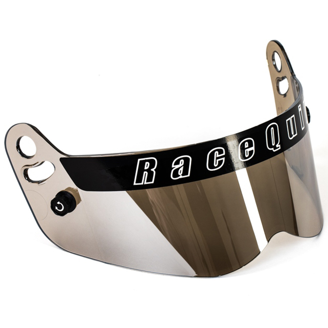 This silver mirror polycarbonate faceshield is designed to fit RaceQuip VESTA15 Helmets. RaceQuip faceshields (sometimes called helmet visors) are formed from 3mm thick distortion free high strength polycarbonate. A Visor Strip and Tear-Off Posts are included. RaceQuip offers several different helmet face shields to meet any racing conditions you may encounter, from standard clear replacements to dark smoke tint, mirror or blue irridium for bright sunlight conditions, and amber for nighttime racing. All shields are distortion free high strength 3mm polycarbonate and include a visor strip and tear off posts.