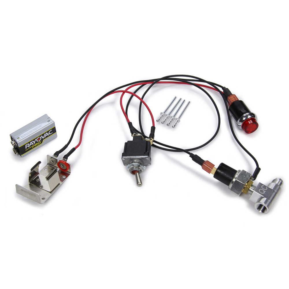Warning Light - Deluxe - Oil Pressure - 20 psi - 1/8 in NPT Male - Battery / Fitting / Light / Sender Switch / Wiring - Red - Sprint Car - Kit