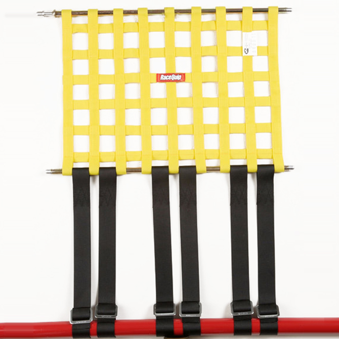 This RaceQuip Window Net Bottom Bar Attachment Kit features an unique way to secure the drivers side window net in a racecar. This kit consists of six drop forged 3 bar slides and six 1.5 wide nylon straps with loops at the top. This strap on kit allows you to mount your bottom window net bar to a door bar in the racecar chassis. You install the straps on the bottom bar of the window net mount kit, and then determine the length you need to wrap around a rollbar in the door. You then adjust the length of the straps and then loop them around the bar and lock them in place with the 3 bar slides. It is recommended to use all six straps to replicate the strength of the window net itself. Sold as one complete kit.