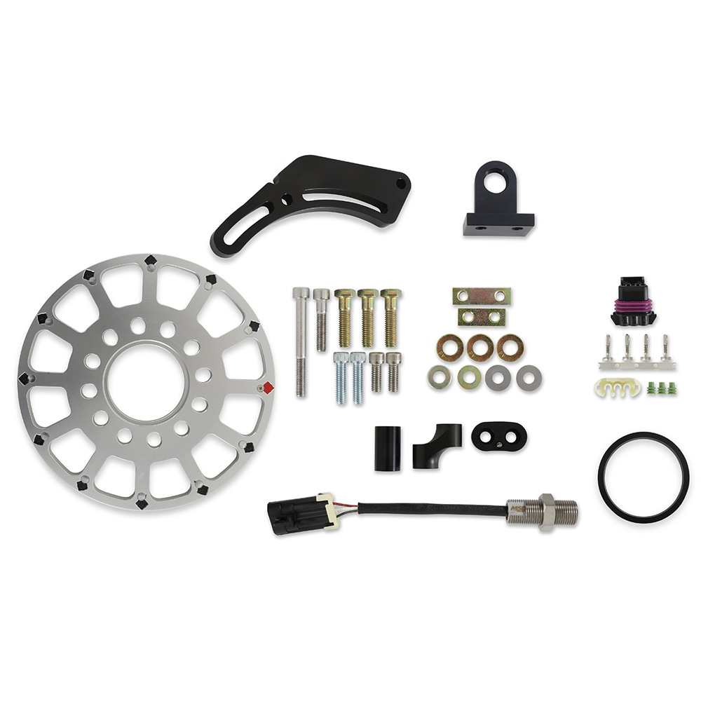 Upgrading to an MSD Flying Magnet Crank Trigger Kit will deliver the precise and reliable signal that a high performance engine requires. This kit gives you the ability to control timing electronically through a Holley EFI ECU (or other standalone engine management system / ignition controller). At the heart of the kit is the 3-wire Hall-Effect Sensor that is easier to set up, less susceptible to EMI/RFI interference/noise, and less likely to have false signals than other methods (Distributors and VR Magnetic Sensors). In addition, they are less prone to mechanical failure since there are no wear parts. With the included high quality timing pointer and the use of a direct bolt-on, degreed balancer (see below list for recommendations), you'll be able to adjust timing in the precise increments required for your engine.