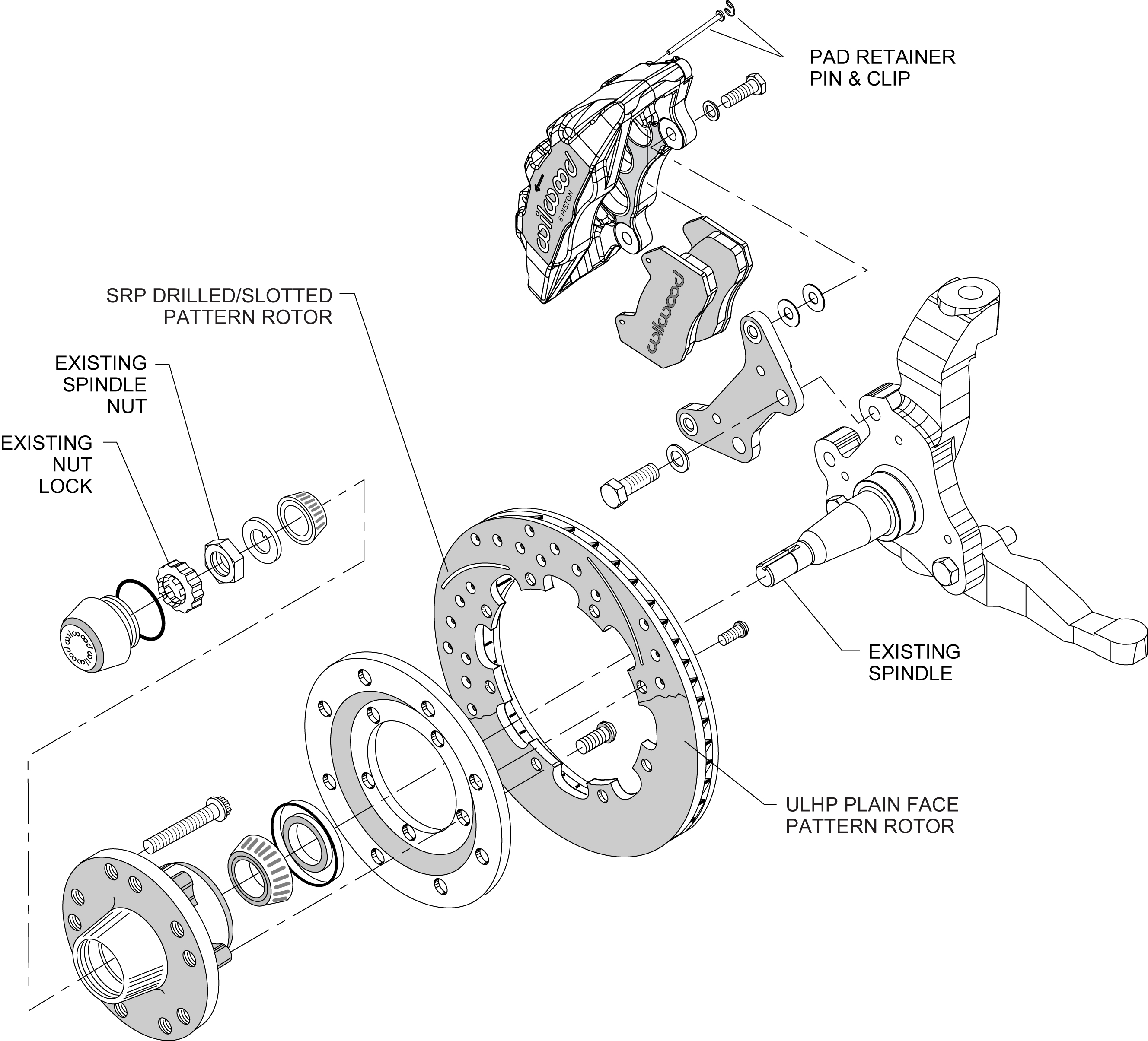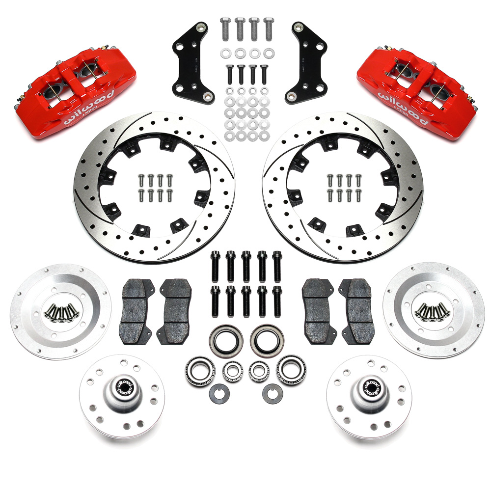 DynaPro 6 forged billet calipers are combined with 12.19” diameter rotors for this group of traditional non-ABS spindles on American muscle cars and vintage rods. The enhanced brake capacity and pad performance of the six piston calipers provide an intermediate level alternative to the bigger six piston kits. These kits compliment wheel, tire, and suspension upgrades on all types of custom show and high performance street / strip machines. A full range of caliper finishes and rotor designs enable the builder to personalize the style and optimize the brake performance for each individual application.